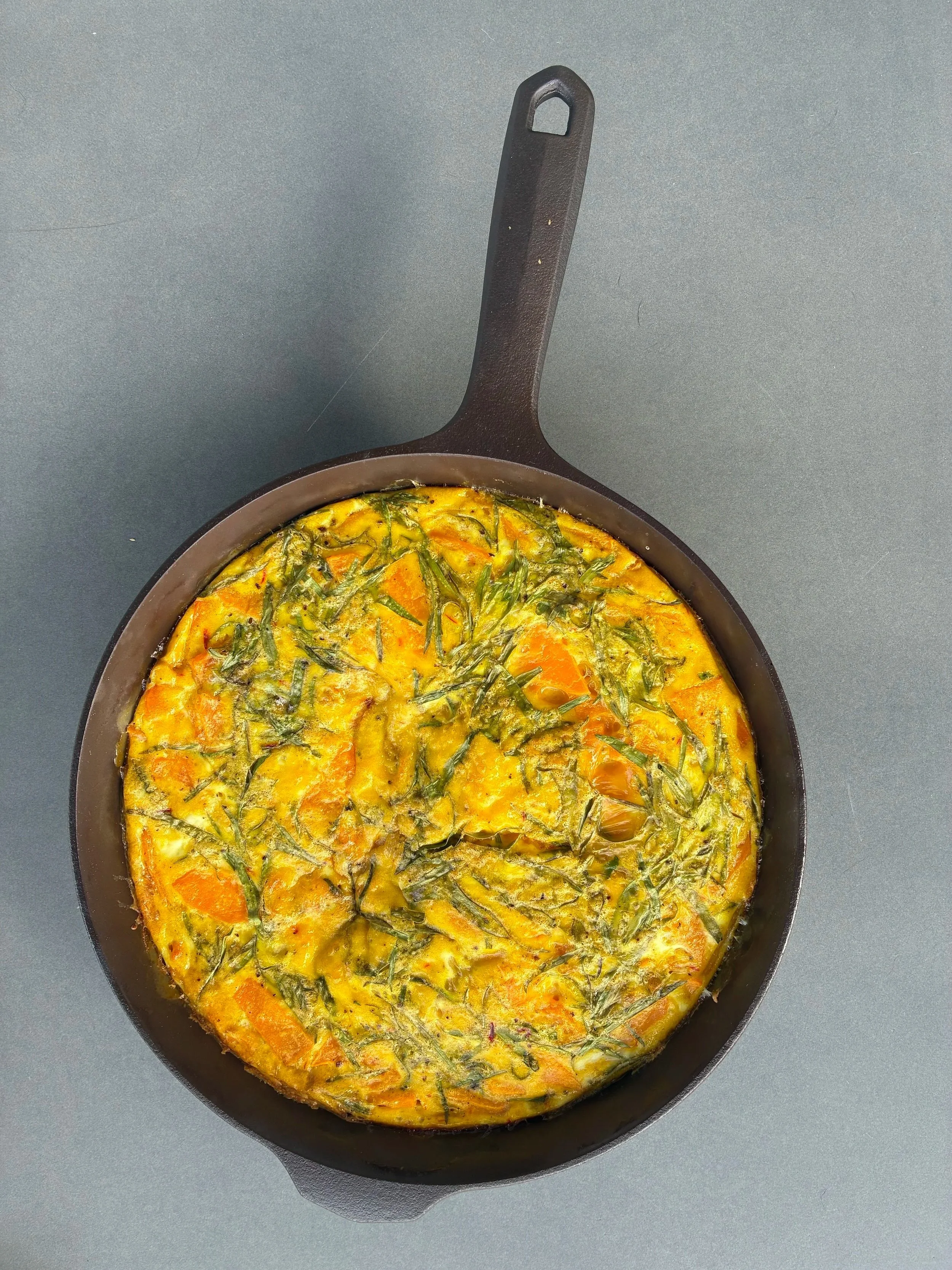Amy made a frittata with butternut squash, shallots, spinach, saffron and tarragon. It was served with a mixed greens salad with fennel, carrots, pomegranate seeds and toasted pepitas dressed in a a dijon, honey, lemon and olive oil dressing.